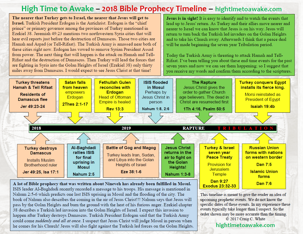 2018 is upon us and end time Bible prophecy is becoming clearer and clearer to see. Every year I tell you that these end time events typically take longer than I suspect to come to pass. Now it seems that Bible events are cued up and ready to begin in earnest. I think that Jesus will return within the next couple of years.